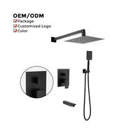 シャワーシステムモダンブラック露出ウォールマウントシングルハンドルスクエアシャワーヘッドソフト & レインスプレーパターン